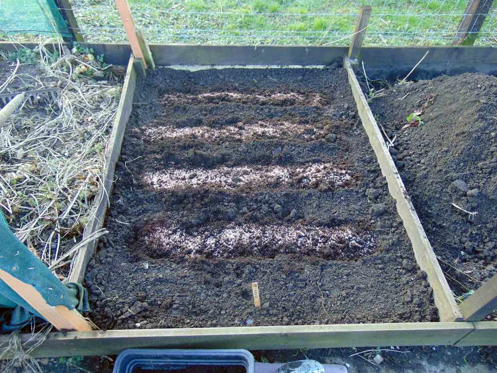 I almost forgot completely about planting Garlic this year. I know I meant to get some planted in November. I guess the ground must have been frozen, then I must have simply forgotten about it? Never-the-less, Garlic is still on sale and there is still a little time to get some in the ground. Ideally, Garlic needs a bit of frost to do well. I have planted 24, in 4 rows of the variety ‘Flavor’ again this year. Planted in trowel-depth compost with lots of plant food.