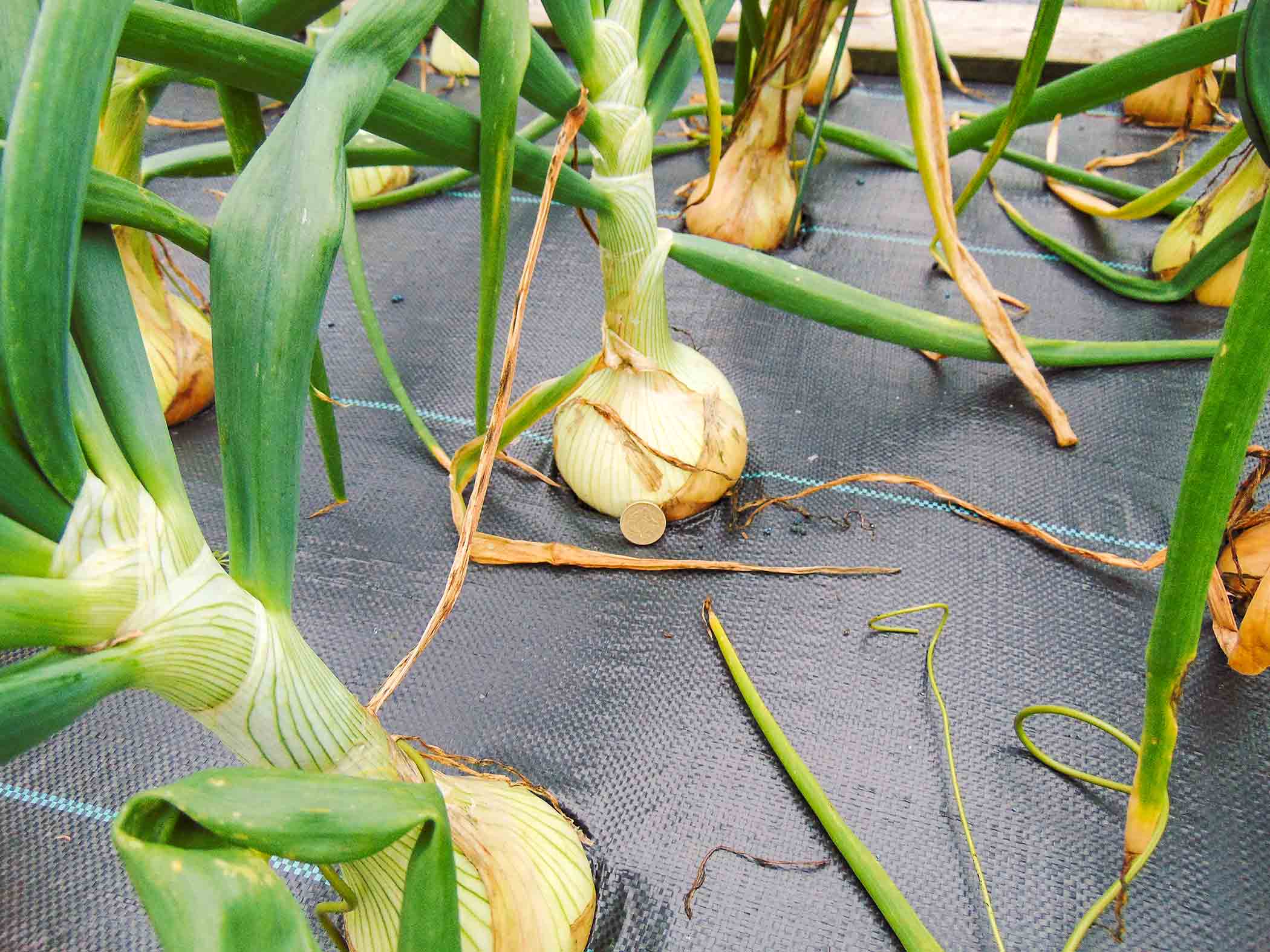Picture of a one pound coin against a giant onion