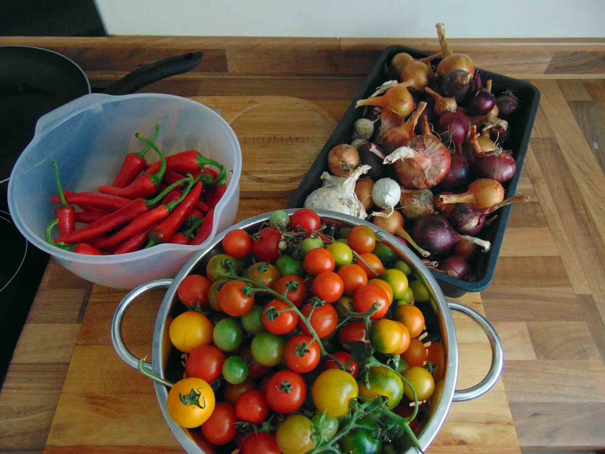 It has been a while since I have made a chutney from my surplus crops. This has been due to the fact that the past two years have really not been that productive. This year has been very different indeed. Although some fruit and veg have still not produced as well as in previous seasons, I have had a bumper crop of tomatoes; so it’s time for Christmas chutney making.